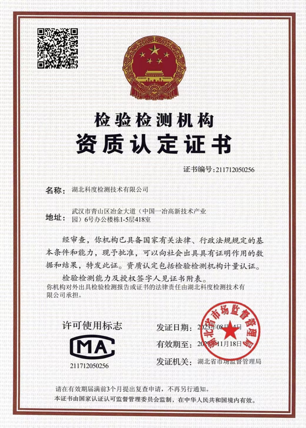 湖北科度檢測技術有限公司是一家專業(yè)從事環(huán)境類及相關領域檢測的第三方檢測機構,公司已通過湖北省市場監(jiān)督管理局CMA計量認證,可以面向社會出具權威CMA檢測報告。 我公司實驗室嚴格按照國家標準建設,擁有一大批國內(nèi)外先進儀器設備及現(xiàn)代化配套設施,并有經(jīng)驗豐富的中高級專業(yè)技術人員和嚴格的實驗室質(zhì)量保證體系為項目運作提供強力支撐。 作為第三方檢測機構,公司始終以高度的社會責任感經(jīng)營企業(yè),以“公正、嚴謹、高效”為宗旨,依托專業(yè)的技術實力為客戶提供專業(yè)優(yōu)質(zhì)檢測服務,受到政府、企業(yè)和社會各界的廣泛關注和認可。